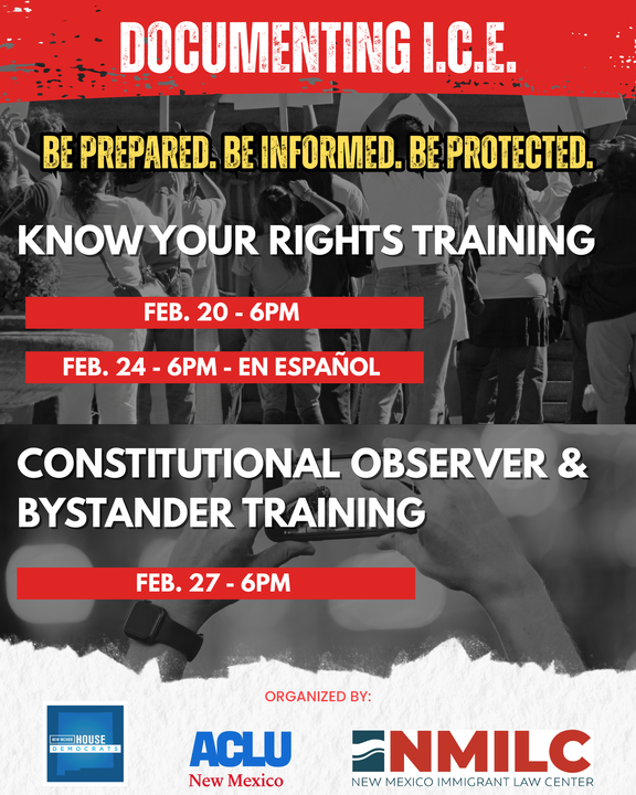 The NM House Democrats have partnered with NM Immigrant Law Center and the ACLU to put together a couple of training sessions: