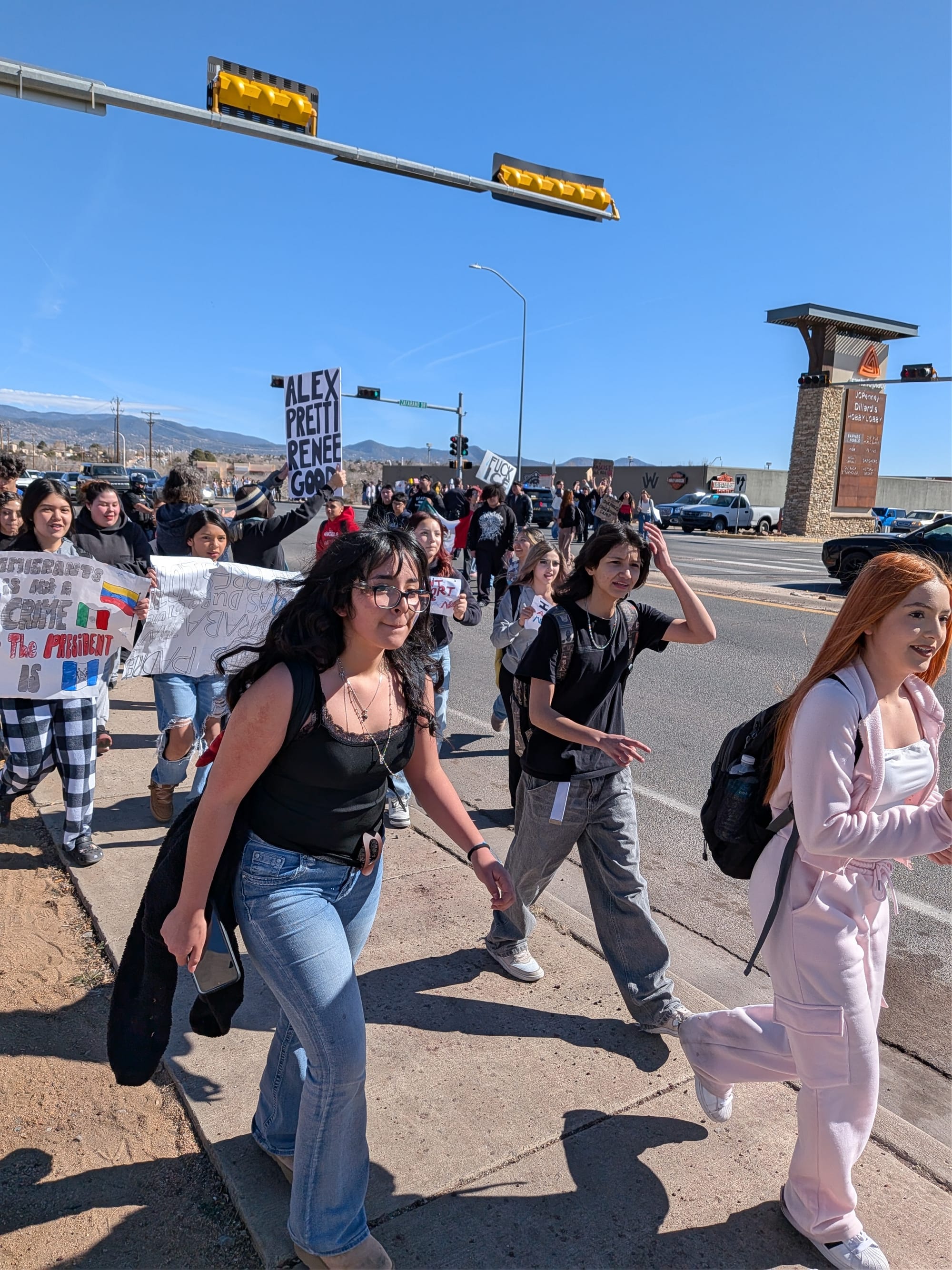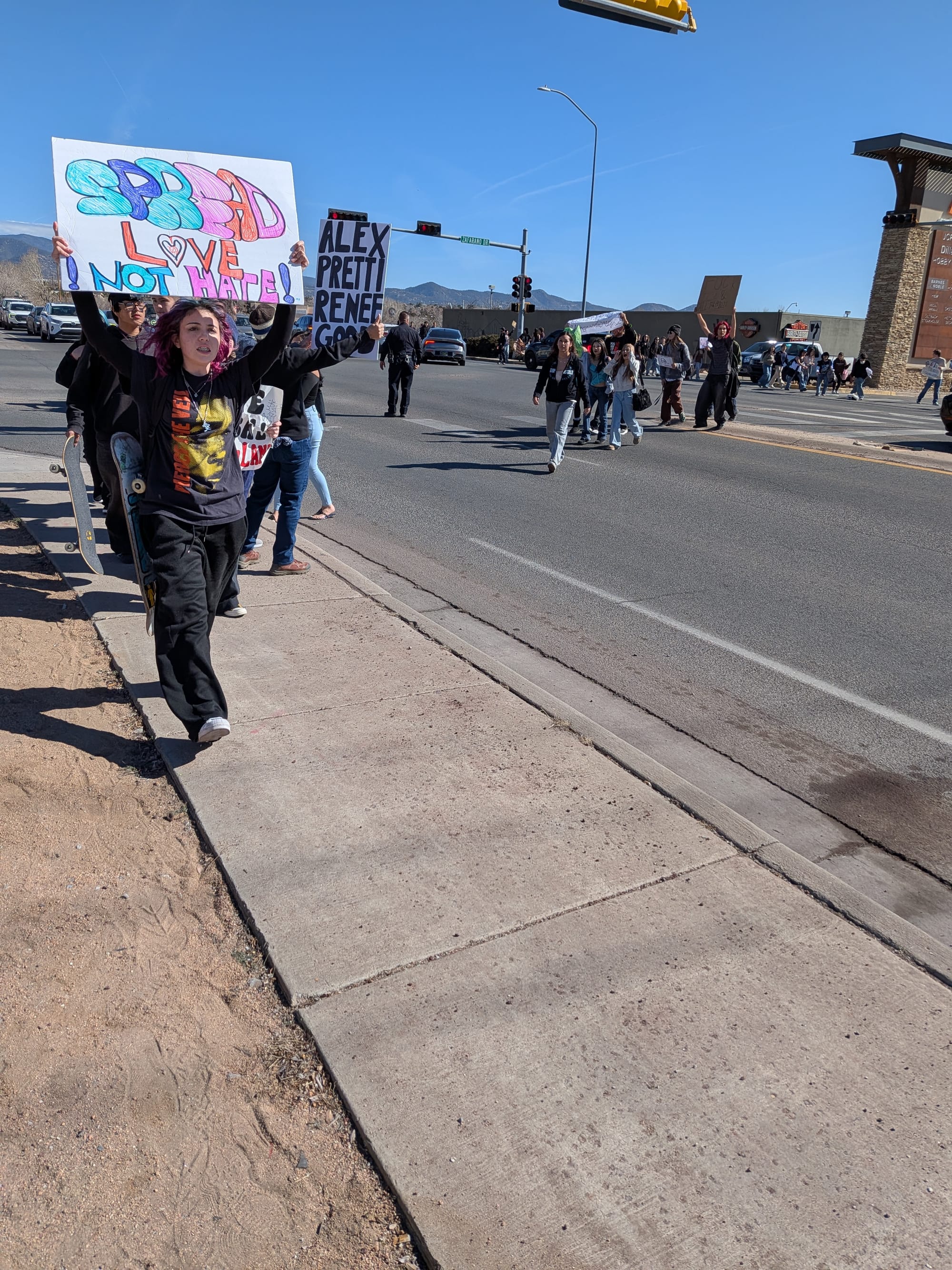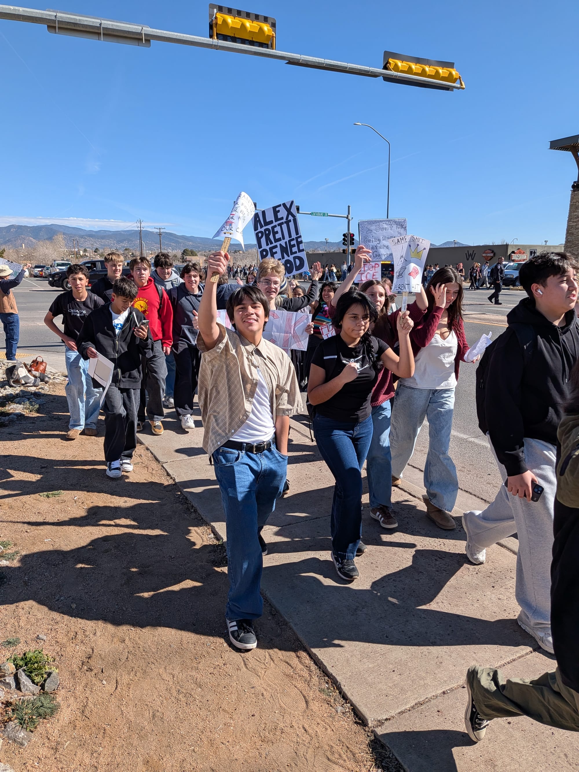 We were protesting on February 6th, with a small group on the corner of Zafarano and Rodeo. Suddenly the traffic stopped and we could hear police sirens. Over 400 students come pouring down Rodeo Road toward us and it was thrilling to witness that sight. When they saw us, they came running to us with such enthusiasm, thanking us, giving high-fives until our hands were numb! It was a magical moment. Seeing the energy and determination of those young people lifted my spirits, filling my heart with joy and hope. This generation is finding their power...so, we as adults must embrace them, respect them and listen to them. It's a long road ahead. We need to support them, so they find their way and do a better job than we have done.
