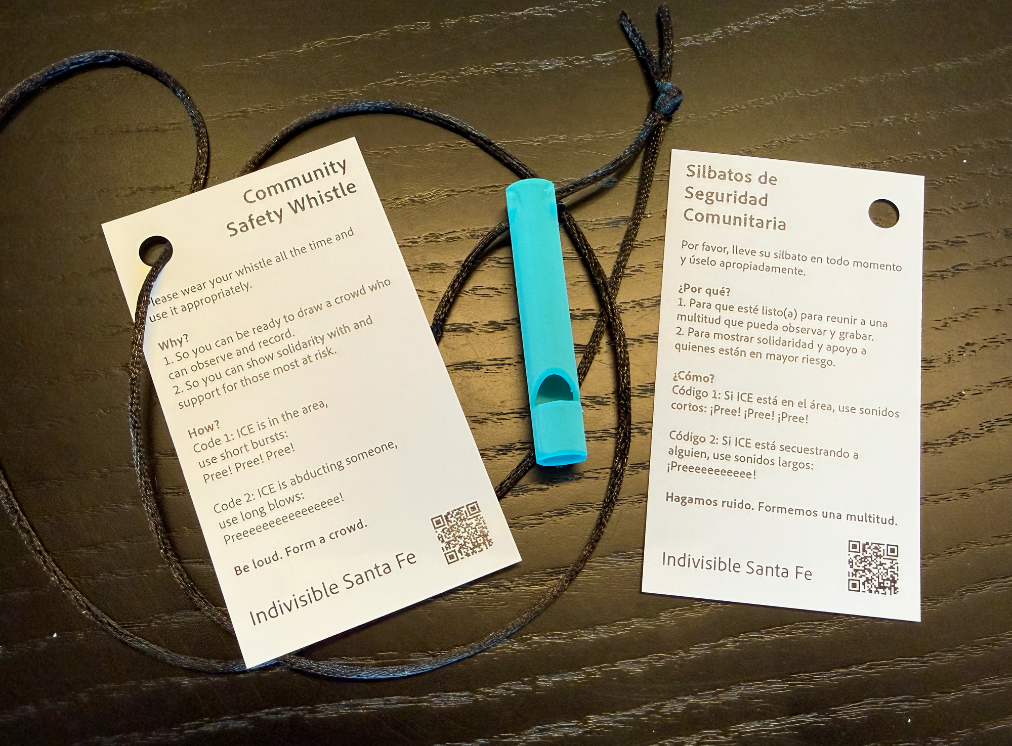 If so, please let us know. Indivisible Santa Fe is providing free community safety whistles for groups in Santa Fe that are organizing to protect our local communities.